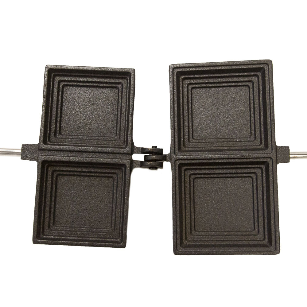 The Campfire Pre-Seasoned Cast Iron Jumbo Jaffle Iron is ideal for sandwiches or sweet treats and suitable for use on camping stoves and outdoor cooking and have been pre seasoned so they are ready to use. Great for sandwiches! Cook two at once with this double size.