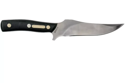 This Old Timer Deerslayer Knife is a great tool to take along on hunting trips. It features a stainless steel satin finish clip point blade. The full tang blade is clad with polymer composite scales, and nickel silver rivet construction. The Deerslayer comes with a leather sheath.