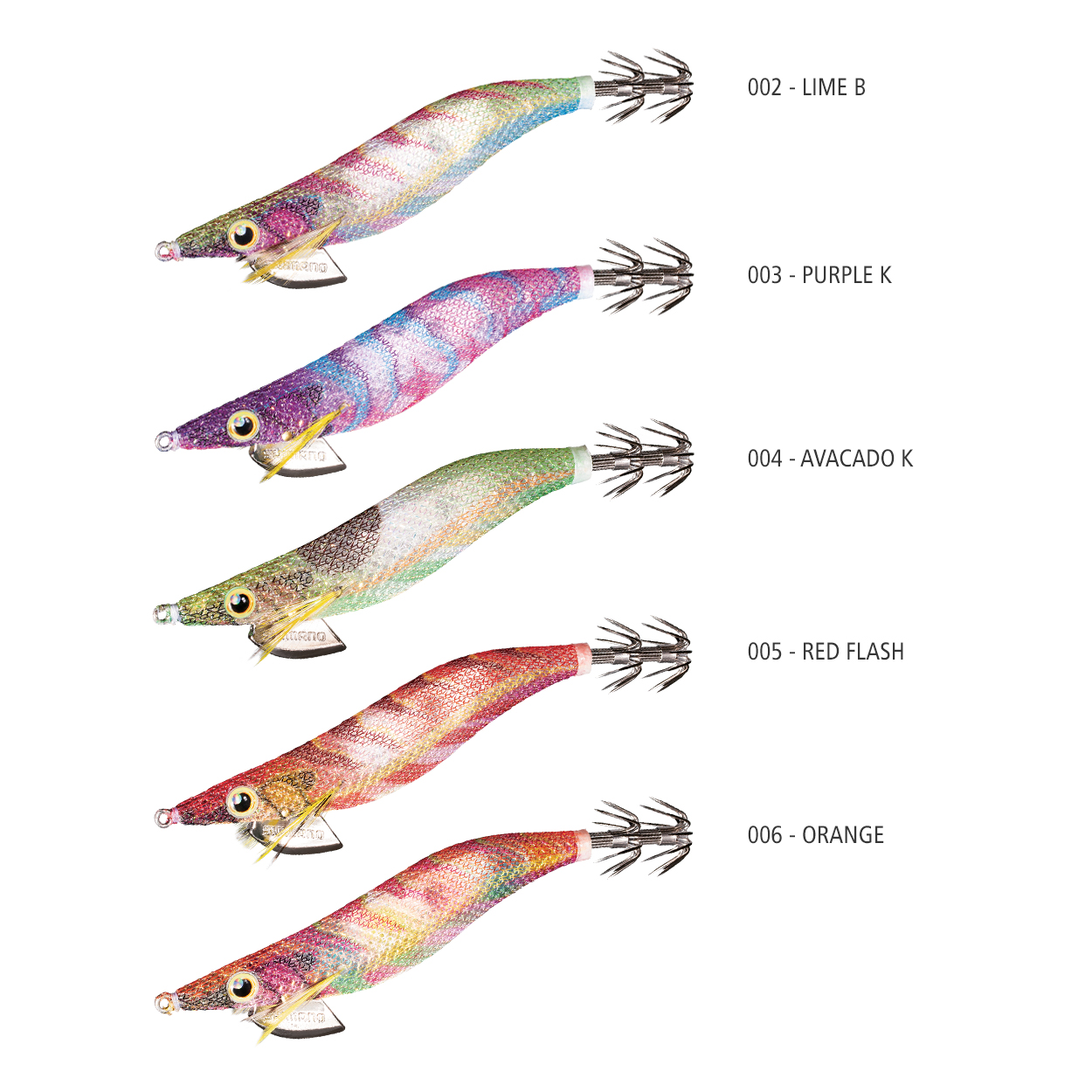By integrating Shimano’s market leading Flash Boost technology, the Sephia Flash Boost Egi range features an internal panel which shimmers continuously. This patented system uses a reflective mirror suspended by micro springs, which harnesses light and UV rays to attract squid throughout the water column. The continuous movement of the mirror within the body is produced by kinetic energy which is highly effective to these visual hunters when the jig is paused, as this is when the squid is most likely to strike. Available in three sizes, 2.5gou, 3.0gou, and 3.5 gou. There are also 13 colours exclusive to the range.
